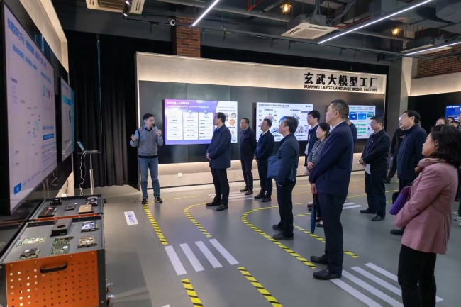 11月11日,省工信厅党组理论学习中心组成员走进南京市玄武大模型工厂,实地调研了解1500p算力支撑下的高效运维与五大平台服务,直观感知以数据为“矿石”、算法为“熔炉”的创新生态,深刻体验大模型在政务、公证、制造等场景的落地实效,充分感受“ai ”深度融合的强劲动能。活动邀请玄武大模型工厂核心技术平台独家运营方华清智言科技有限公司总经理李强,围绕“什么是大模型、大模型的研发与应用、大模型的生态建设”三大核心内容作专家辅导, 厅党组书记、厅长朱爱勋主持活动并作总结讲话。