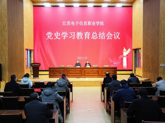 1月13日,江苏电子信息职业学院召开党史学习教育总结会议。党委书记裔大陆强调,要坚持以习近平新时代中国特色社会主义思想为指导,深入学习贯彻党的十九届六中全会精神,深入学习贯彻习近平总书记关于党史学习教育的重要论述重要指示和党史学习教育总结会议精神,巩固扩展党史学习教育成果,把学习成效转化为学校事业发展的动力源泉,以史为鉴、开创未来,奋力开启建设江苏省中国特色高水平高职学校新征程,以优异成绩迎接党的二十大胜利召开。党委副书记姜福祥主持会议,传达学习习近平总书记关于党史学习教育的重要指示和党史学习教育总结会议精神。校领导、各单位各部门负责人参加会议。