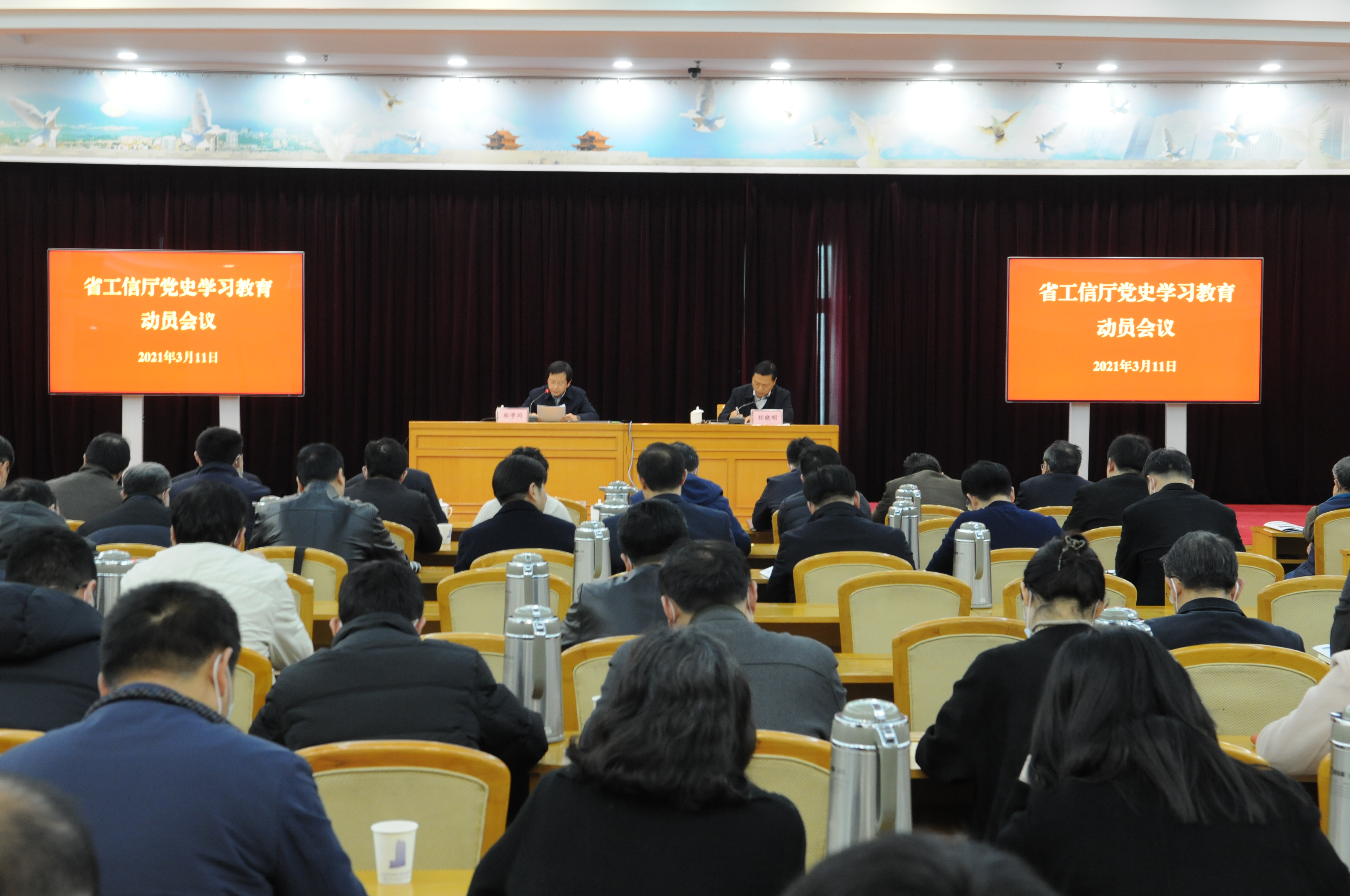 3月11日,省工信厅召开党史学习教育动员会议,深入学习贯彻习近平总书记在党史学习教育动员大会上的重要讲话精神,认真落实中央、省委关于党史学习教育的部署要求,动员厅各级党组织和党员干部学党史、悟思想、办实事、开新局,切实担负起“争当表率、争做示范、走在前列”重大使命,以推动全省工业和信息化高质量发展的过硬成果庆祝中国共产党成立100周年。