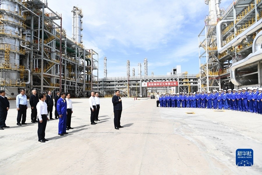 9月13日至14日,中共中央总书记、国家主席、中央军委主席习近平在陕西省榆林市考察。这是13日上午,习近平在国家能源集团榆林化工有限公司年产40万吨乙二醇项目现场考察。新华社记者 李学仁 摄